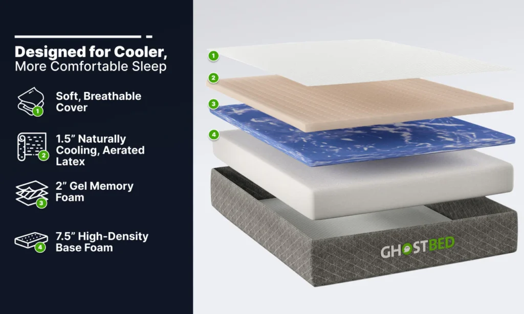 - Standard GhostBed: Offers dependable support and plush cushioning, but lacks the extra wellness-oriented layers.